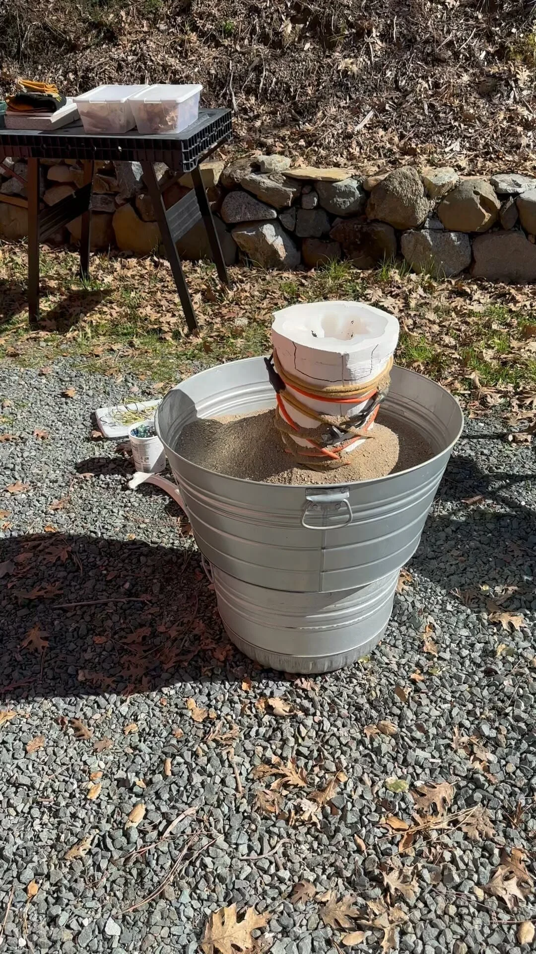 The inspiration for this sculpture was purely intuitive (with the Fairy folk and their world(s) in mind). I titled it ~ 'The Keeper of the Three Special Heads.' A portion of the story ~ 'Over time, three ancient colossal heads have been found in 'this' particular fairy territory, though have yet to be found in their history books as recorded artifacts. Legendary and mysterious, these heads draw touring fairies from many star-clusters and galaxies to gaze in puzzling wonder. The Keeper of these heads is equally mysterious, some even rumor that he or she or it is entirely invisible and carries a jade candle stick holder at night while inspecting the heads for stone-dissolving snails, acidic-lichen-spores and loitering pixies. The Keeper also has pets who live in and around the collection to keep additional eyes and ears out for anything that doesn't belong or that belongs to Doesn't.